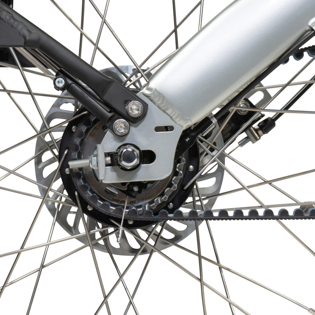 La Náutica e-4motion está equipada con un potente motor central de 100 Nm. Combinado con la correa de transmisión (sin cadena), ¡todo el tren motriz está exento de mantenimiento durante 20.000 kilómetros! Una moto perfecta para el uso diario. Como todas las piezas están ocultas, esta bicicleta es mucho menos vulnerable y no tendrás que preocuparte por el aceite o la lubricación durante el almacenamiento; después de todo, ¡no hay cadena!